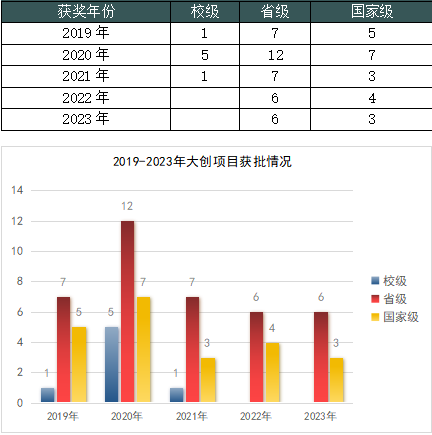 2019-2023年大创项目获批情况
