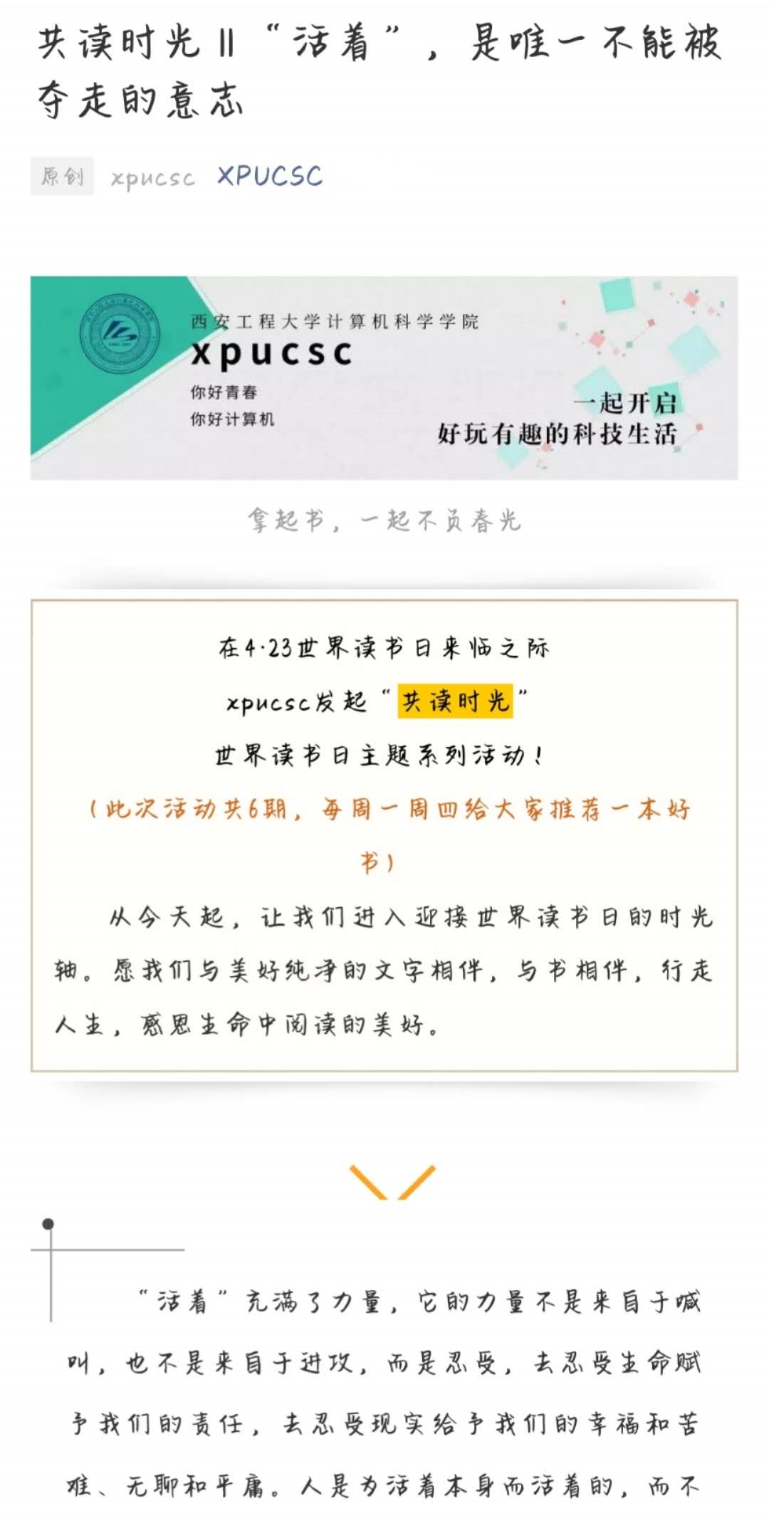 为迎接第25个世界读书日的到来,在学院范围内营造浓郁的读书氛围,丰富疫情期间同学们的精神文化生活,提高学生的人文素养,beat365在线唯一官网于4月23日起至本学期结束,面向学院师生持续开展了以“共读时光”为主题的线上图书推荐活动,在学院掀起了一股读书热潮。