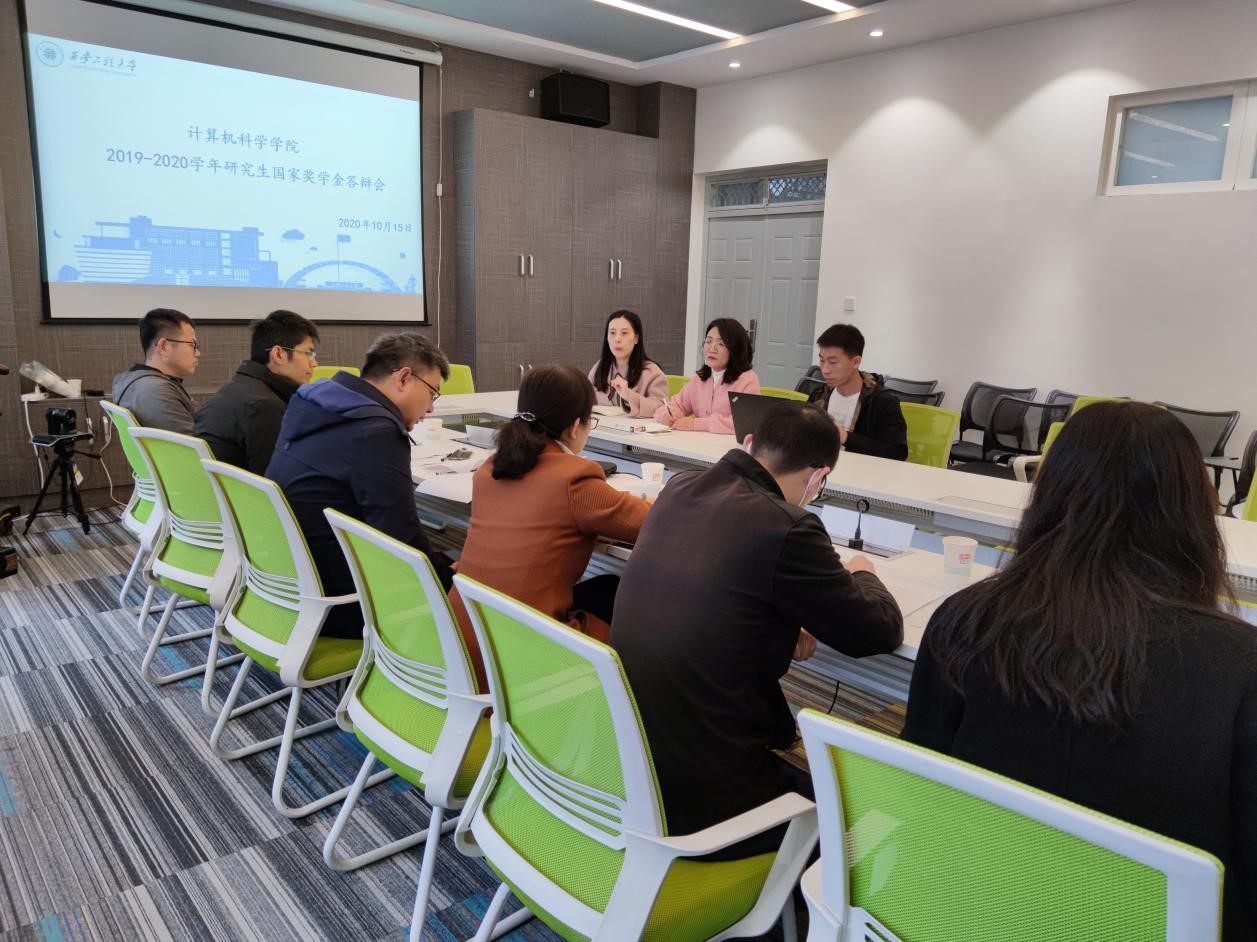 会上,程帅首先对2020年研究生国家奖学金评选要求作了说明,并介绍了前期材料审核具体情况。接着,4名申请参评学生依次进行了公开答辩,他们分别从思想素质、学习成绩、任职情况、论文发表和科研立项等方面进行答辩阐述。每名学生答辩结束后,评审委员会成员以国奖评选条件为根本就每位答辩者的汇报内容进行提问,仔细甄别、反复研究并就有关研究项目提出了良好的建议。最后,评审委员会成员就申请人提交的材料再次进行审核并讨论,综合参评学生的材料及答辩情况,最终确定了辛婷婷等3名同学参评2020年研究生国家奖学金。