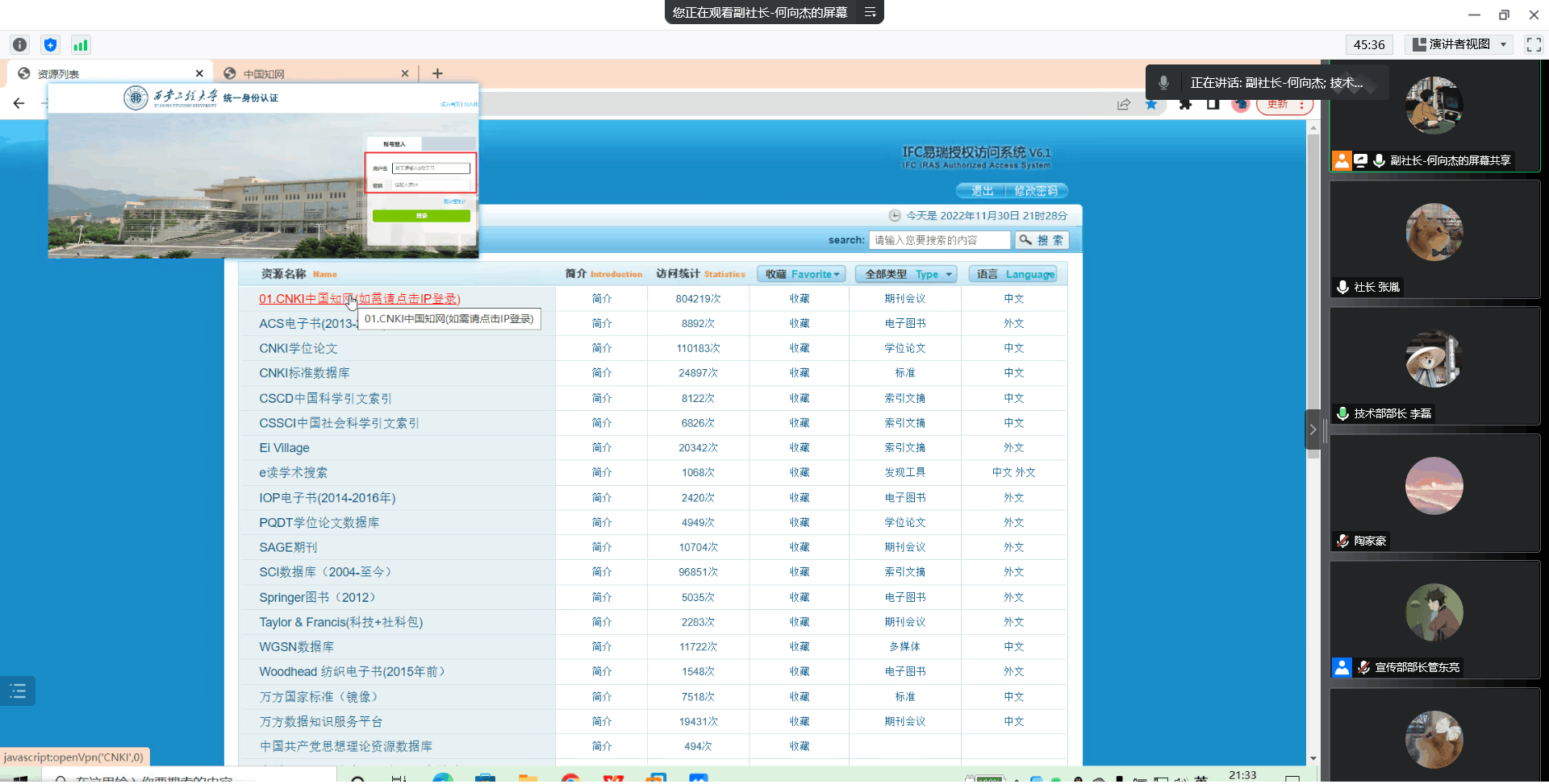 通过前一段时间的社团招新工作,西安工程大学beat365在线唯一官网计算机协会完成了新学年的招新活动。结合当下疫情现状和社员们的学习需求,协会于2022年11月23日在线上举办了“新生社员交流暨知网知识介绍会”。