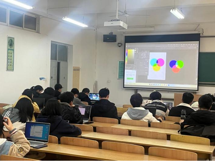 在本次PS培训交流会中,计算机协会技术部部长利用了投屏的方式,给社员们展示了PS的图层创建、颜色搭配、蒙版设置等操作。社员积极参与,彼此交流,同时利用所学到的知识完成了自己的PS作品。
