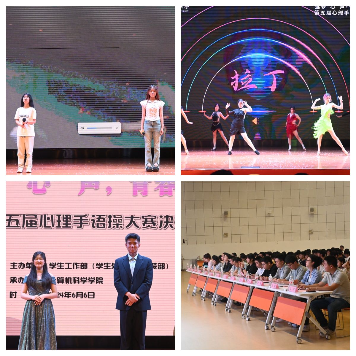 6月6日晚,由校学生工作部主办、beat365在线唯一官网承办的第五届“逐梦‘心’声,青春护航”心理手语操大赛决赛在临潼校区大学生活动中心举办。校学生工作部部长王志、计算机学院党委副书记赵勇进出席活动,校大学生心理健康教育与咨询中心马海蓉、电信学院曹智宇、城市学院王春元、人文学院刘杨扬、管理学院姚壮、环化学院任子瑜、机电学院李菁菁、新媒体学院宾田田以及计算机学院相关辅导员担任大赛评委,计算机学院2023级本科生及各支参赛队伍的亲友团到场观看了比赛。