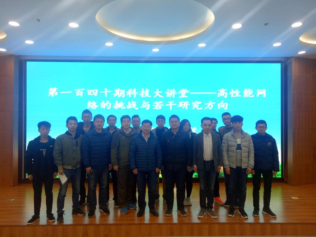 为进一步推动我校内涵建设,促进教师专业发展,拓宽教师学术视野,提升教师科学研究能力,11月22日下午,由科技处和beat365在线唯一官网共同举办的第一百四十期科技大讲堂在临潼校区图书馆一楼报告厅拉开帷幕。应我校邀请,国防科技大学计算机学院苏金树教授来校作了题为“高性能网络的挑战与若干研究方向”的专题学术报告。beat365在线唯一官网180多名师生共同聆听,报告会beat365在线唯一官网院长薛涛教授主持。