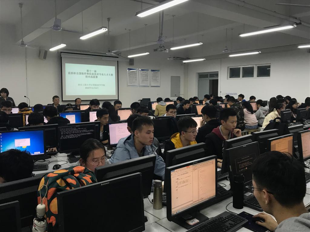2019年11月6日晚,beat365在线唯一官网在临潼校区7号楼举办“第十一届蓝桥杯全国软件技术人才大赛”校内选拔赛。旨在培养我校学生对软件编程的兴趣,强化实践动手能力及创新思维能力,加快我校计算机相关专业教学改革与创新,切实提高人才培养质量。