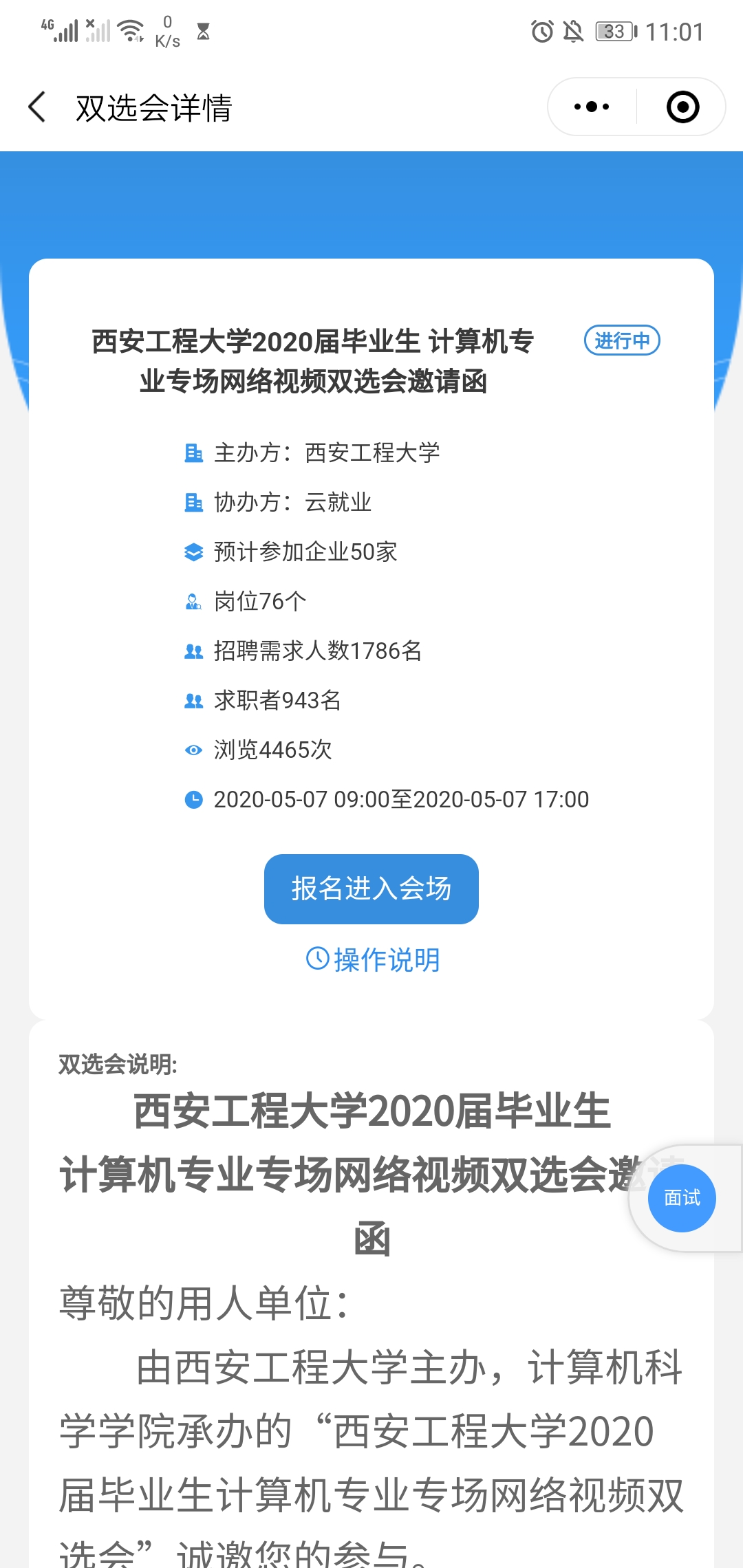 5月7日,由西安工程大学招生就业工作处主办、beat365在线唯一官网承办的2020届毕业生计算机专业专场网络视频双选会如期举行。