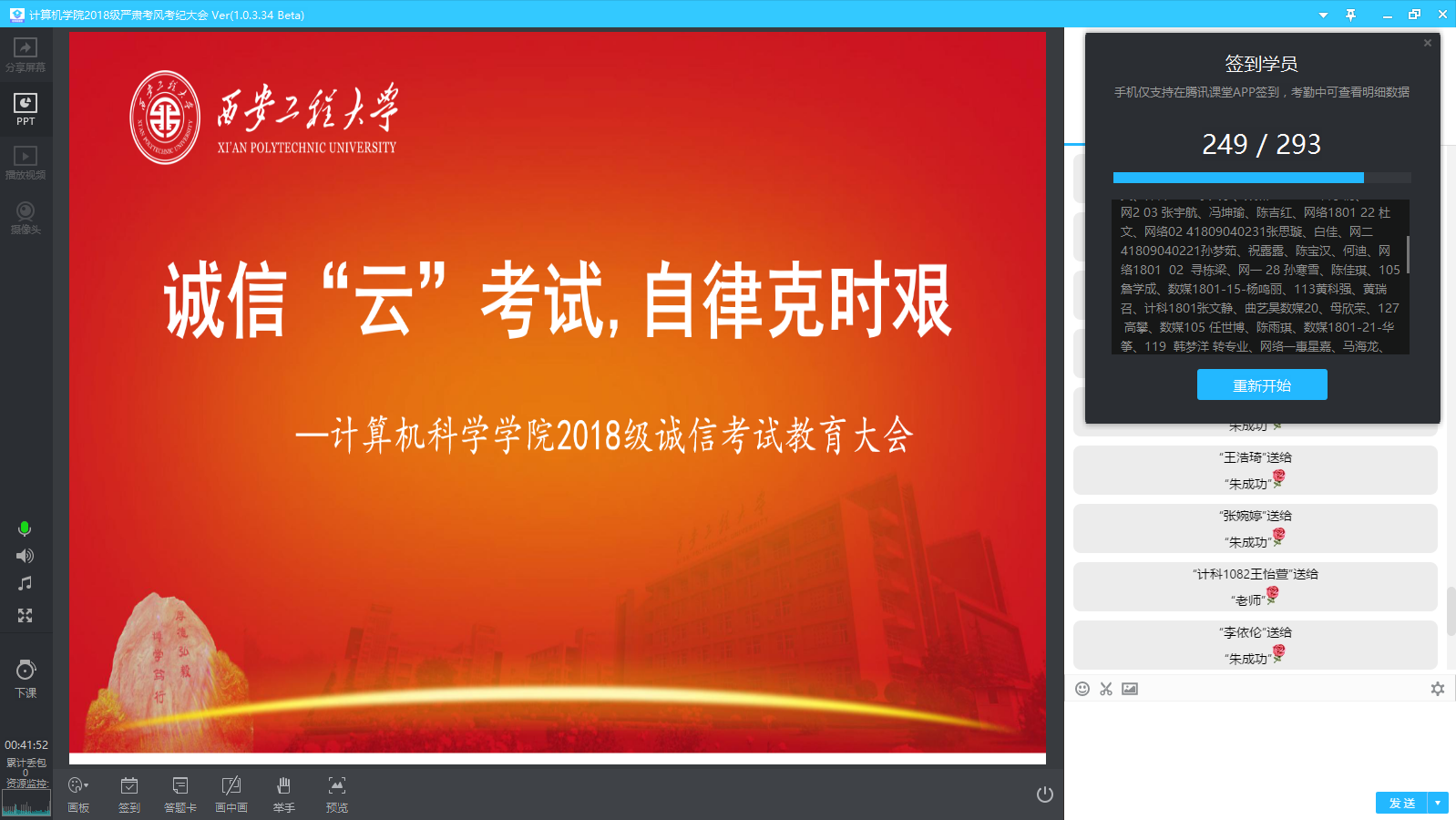 7月2日,beat365在线唯一官网通过线上召开2018级诚信考试教育大会,学院学工办主任朱瑾、2018级辅导员朱成功及全体2018级学生参加了会议。