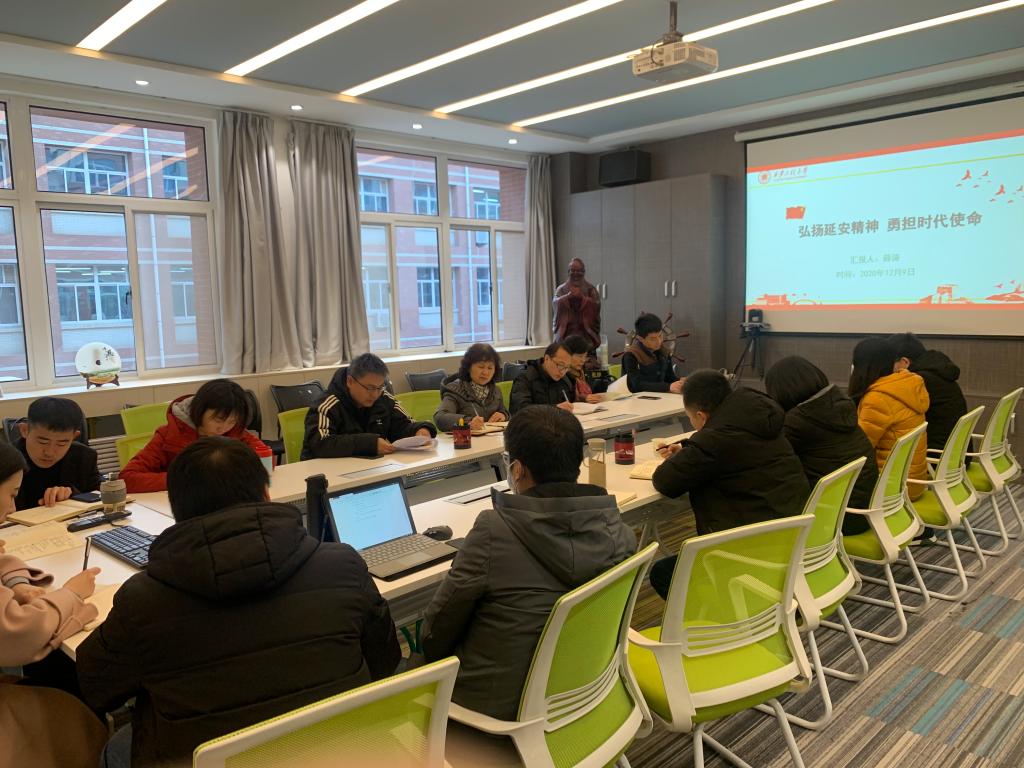 最后,薛涛结合自身学习体会,以《弘扬延安精神勇担时代使命》为题讲授了专题党课。他以自己10月亲赴延安学习时的经历谈起,解析了延安精神的深刻含义,一是自力更生、艰苦奋斗的创业精神;二是全心全意为人民服务的精神;三是理论联系实际、不断开拓创新的精神;四是实事求是的思想路线。他强调,作为一名高校工作者,一定要全面贯彻党的教育方针,落实立德树人根本任务,围绕提升教育教学质量,充分发挥课堂教学主渠道作用,不断增强教书育人、以身立教的社会责任感,尽心尽责把工作做好,“学为人师、行为世范”,管好学生,做好科研,服从大局讲团结,忠诚事业讲奉献,立足本职比贡献。