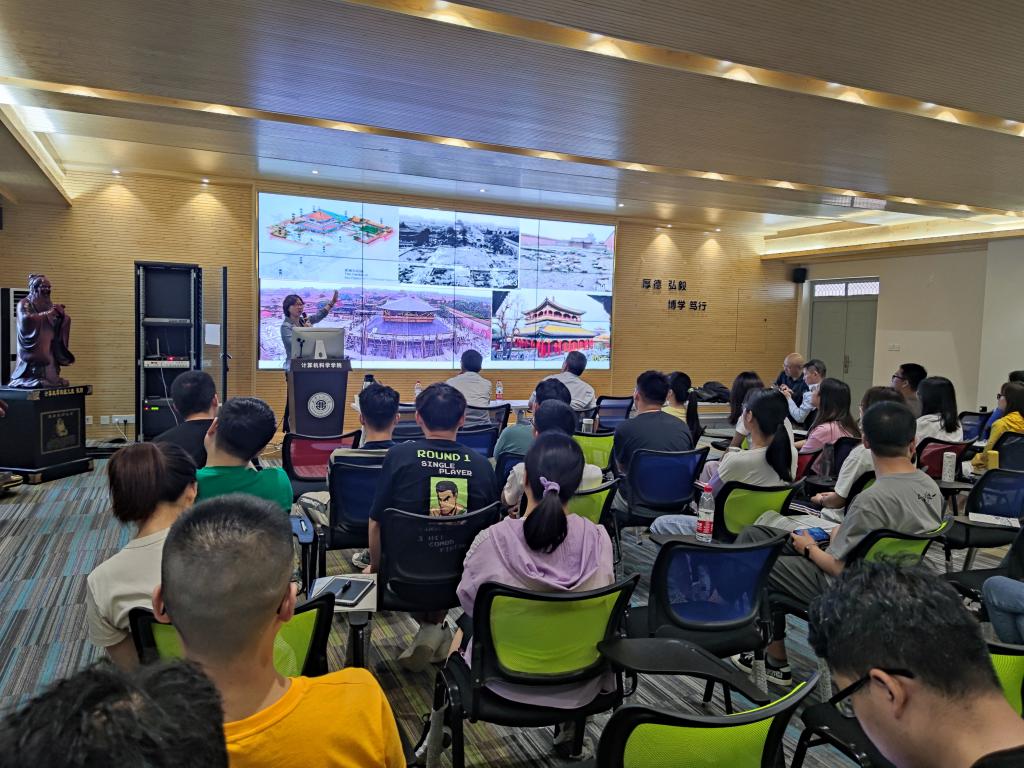 陈港泉处长首先介绍了莫高窟的价值,以此引入对敦煌莫高窟监测预警体系内容的阐述,围绕莫高窟壁画的制作工艺与壁画病害、当前壁画保存与莫高窟开放面临的问题、监测预警体系分析研究以及应用等方面,为在场师生分享了敦煌莫高窟的历史文化、莫高窟特殊的环境及病害、以及如何利用现有的监测预警技术对莫高窟进行保护预警等方面的知识和经验。