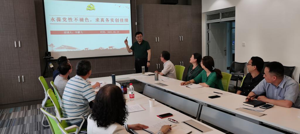 李鹏飞结合自身学习体会,以“永葆党性不褪色,求真务实创佳绩”为题给大家上了一堂生动的党史学习教育党课。他从大革命时期、土地革命时期、抗日战争时期、民主革命时期四个阶段详细讲述了共产党的发展历程,通过一个个生动的历史事件,向大家讲述了共产党人勇于自我革命、敢于直面问题的气度和极强的自我修复能力,揭示了党为什么能和为什么伟大的原因。最后他带领全体成员重温入党誓词,他说:读懂入党誓词不难,难的是终身实践,希望在场每个人都能回忆自己入党的初心和使命,始终保持共产党员的先进性和纯洁性,不断增强自我完善、自我提高的能力,时刻按照党的要求,实事求是,积极工作,努力担当作为,全心全意地为学校事业发展和学生成长成才做出自己最大的贡献。