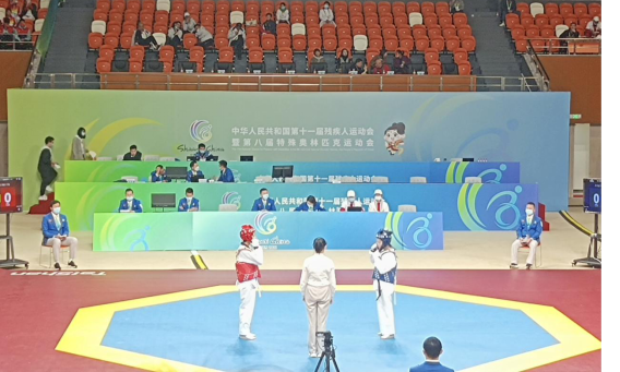 赛场上,运动员们展现出忍耐克己、百折不屈的跆拳道精神,用热血一次次点燃比赛场内的温度。天气凉寒,残奥会却依旧热情不止。抗打击、抗挫折,运动员们为学生们提供了最完美示范。