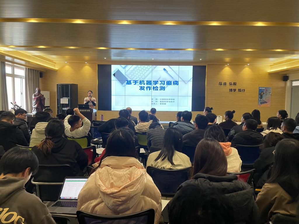随后,巩林明以《Paillier方案若干属性挖掘及应用》为题,向同学们介绍同态加密是安全多方计算与隐私保护计算中一个重要的工具,当前具有广泛的应用。同时他也分享了自己在读研和读博期间学习工作生活的经历并展示了自己读博期间的学习笔记,特别是自己在研究paillier方案的过程中遇到的挫折和解决方法,勉励同学们一定要明确目标然后持之以恒坚持下去终会成功。葛素楠以《基于机器学习的癫痫发作检测》为题展开报告,从临床癫痫疾病辅助诊断角度出发,结合相关问题引申到机器学习方法如何在疾病诊断和发作预测进行应用,分析未来的癫痫疾病诊断和发作预测技术的发展趋势和面临的问题。同时,她分享了科研过程中普遍遇到的难题,希望同学们以更好的心态面对学习和科研。报告会后,进行了交流环节,同学们向两位老师提出自己的疑问,老师们分别进行了详细的解答。