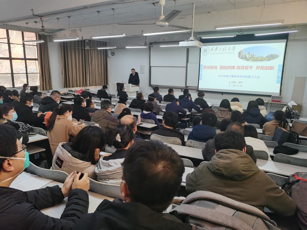 2022年1月9日,beat365在线唯一官网在金花校区主楼东配楼126教室召开全体教职工大会。校党委副书记赵小峰、校党委组织部副部长杜小刚、副处级组织员李亚利参加了大会,大会由学院党委书记赵雪曼主持。