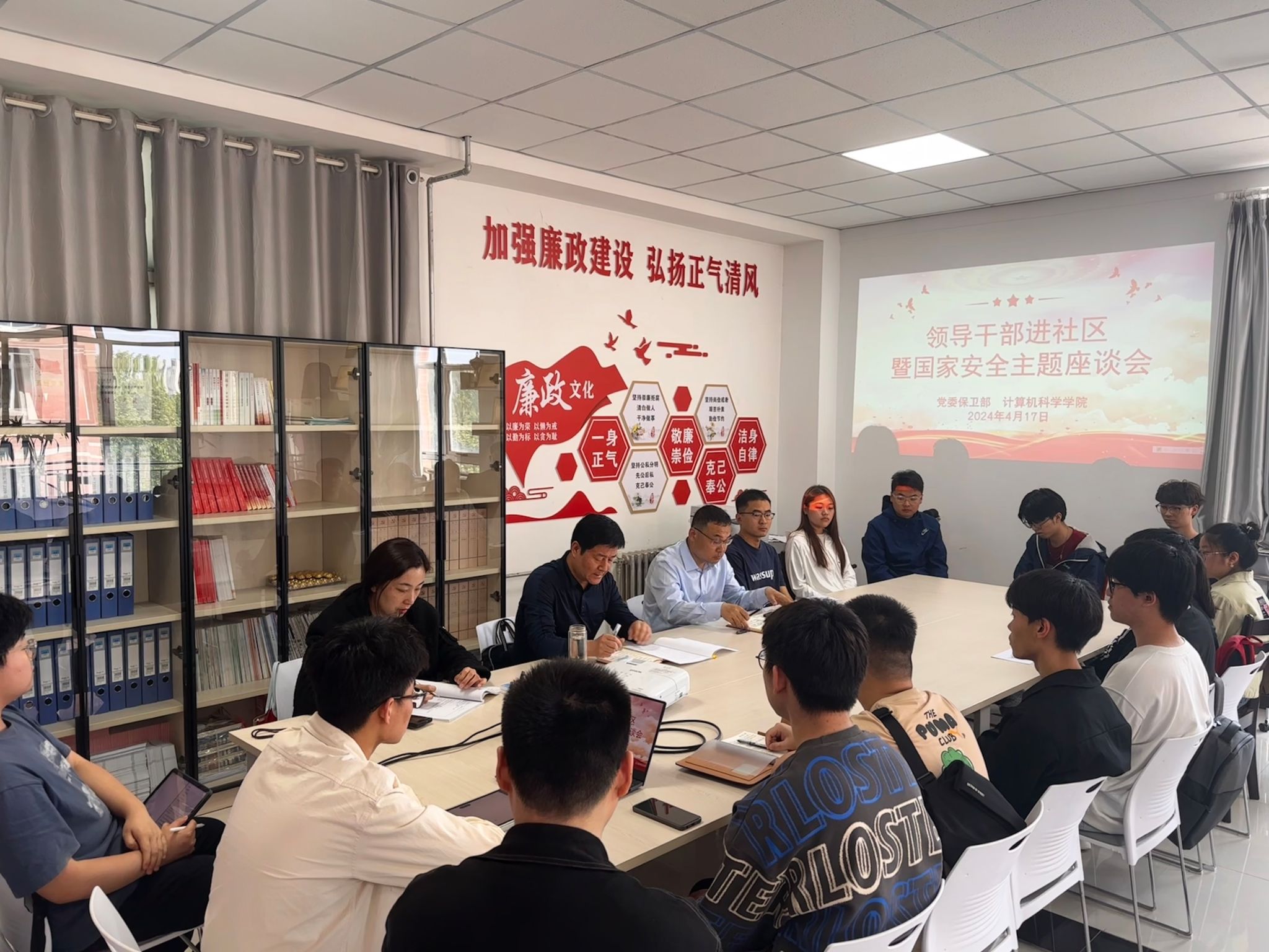 4月17日,校党委保卫部部长潘光辉、政保科副科长闫红洁赴beat365在线唯一官网IT青年成长空间“一站式”学生社区联系功能性党支部开展领导干部进社区暨国家安全主题座谈会活动。计算机学院党委副书记兼学生社区功能性党支部书记赵勇进、学院组织员兼学生社区功能性党支部副书记朱成功及16名学生党员参加了座谈会。座谈会由赵勇进主持。