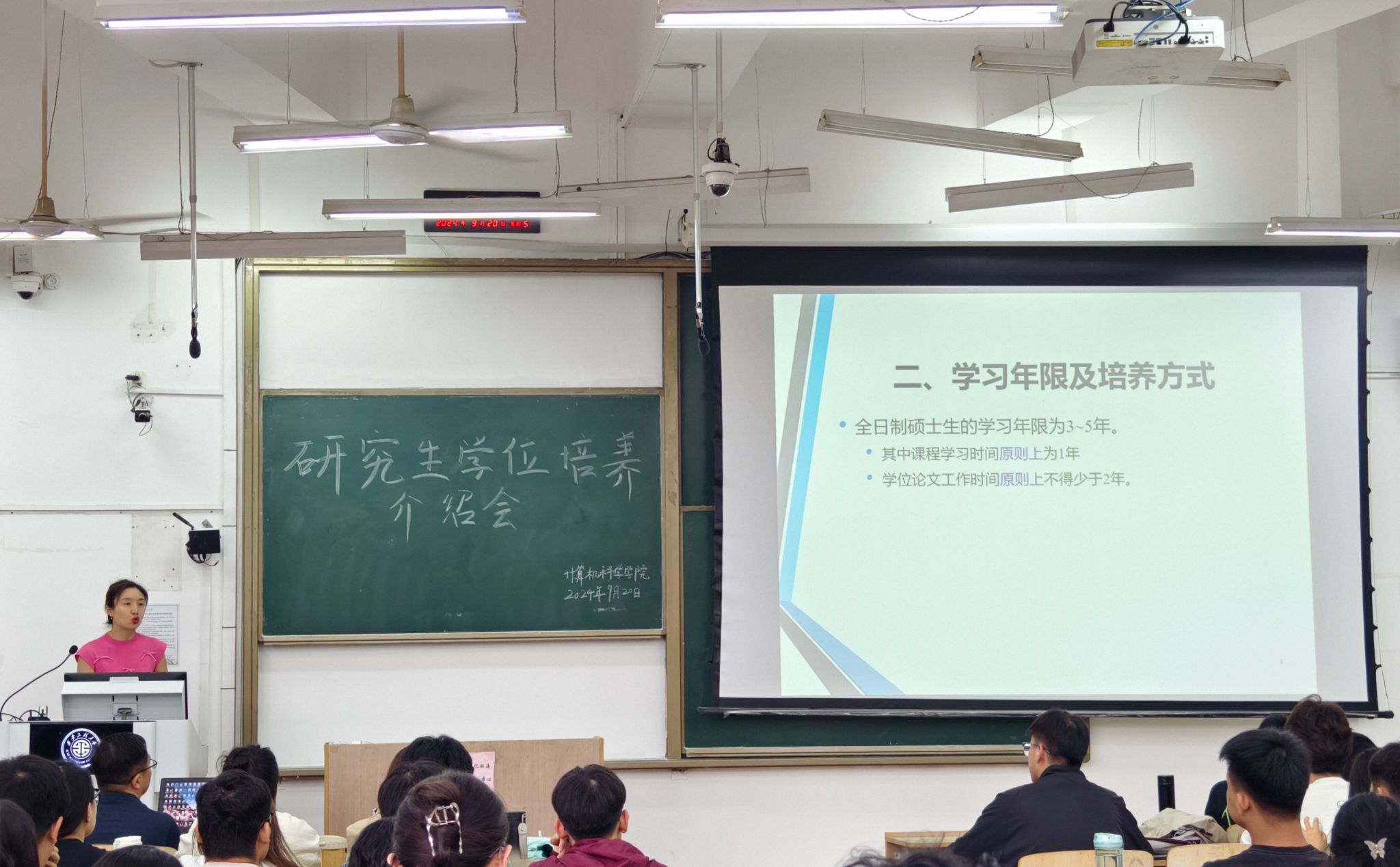 会上,孟雅蕾首先对学院研究生管理模式进行了详细介绍和说明。她具体说明了学院研究生培养部门的职责划分,对研究生培养方式、学习年限、课程安排、获得学位的基本条件等做了详细说明,让研究生新生对学院研究生培养的架构、实施的途径有了明晰的了解。孟雅蕾特别强调了在研究生阶段建立良好的师生关系对于学生培养和学院科研工作顺利开展的重要性,并对如何处置好学生和导师的关系提出了建议。她还就获得学分、注意积累科研成果、学位论文盲审、学术诚信等学生们关心的事项做了详细讲解。