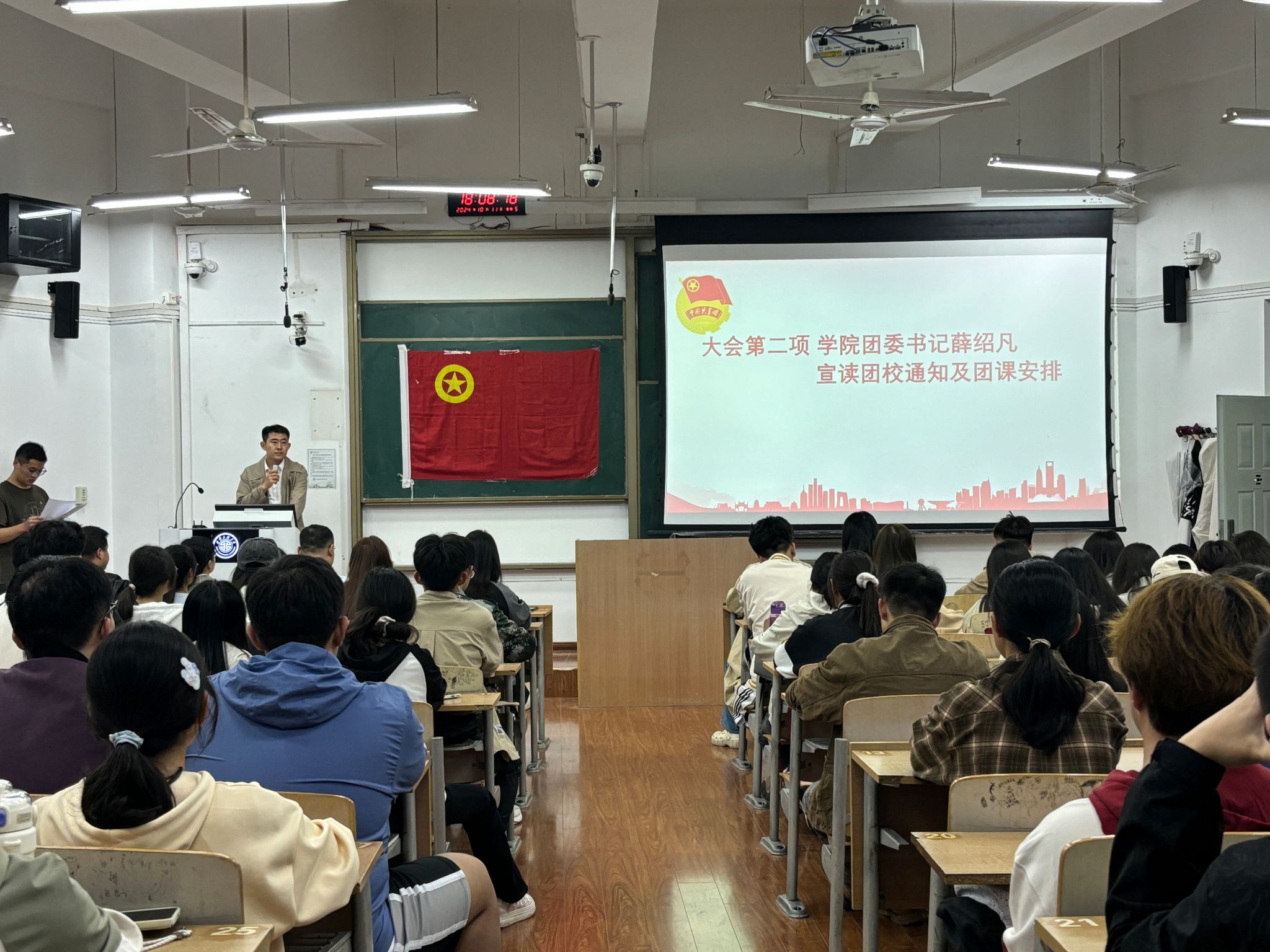 为响应团中央号召,落实上级团委要求,推进在学院团员青年中学习贯彻党的二十大和二十届二中、三中全会精神,落实习近平总书记关于青年工作的重要思想,引导广大团员青年坚定听党话跟党走,激发广大团员的认同感、使命感和参与感,加强学院团干部队伍和团支部建设,2024年10月11日18点,由beat365在线唯一官网团委举办的学院第十七期(总第38期)团校开班仪式在临潼校区B335教室举行。学院党委副书记赵勇进、学工办主任张苹、团委书记薛绍凡、团委副书记左温慧、组织员张鑫、辅导员曹子凡和团学组织学生干部、第十七期团校全体学员参加本次开班仪式。