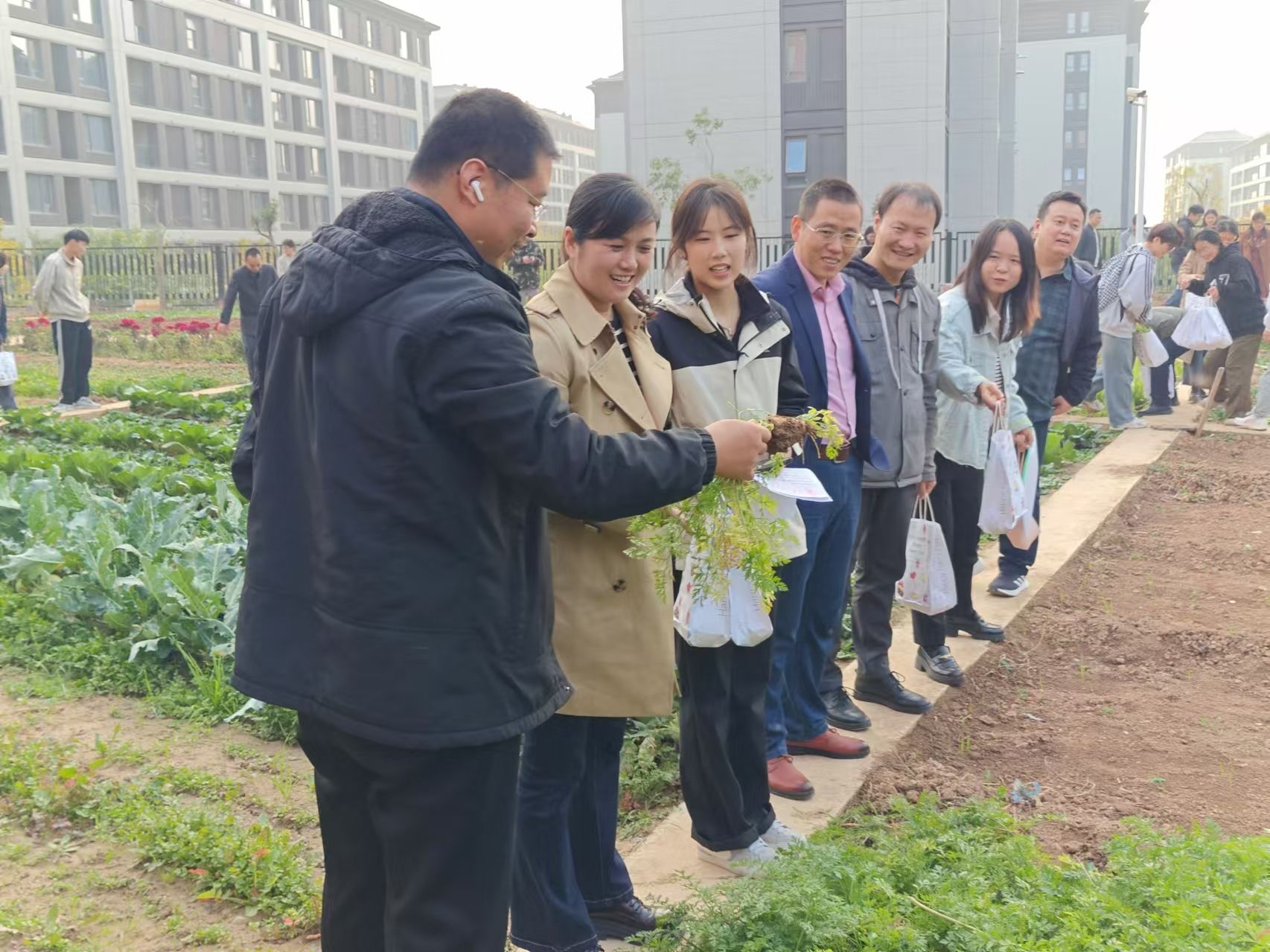 接着,师生一起进入耕读小园采摘大家共同播种的各种蔬菜,如芥菜、白菜、萝卜、菠菜、油麦菜、小葱等。现场还请老师傅讲解了蔬菜播种和采摘的常识,如应季可以种什么品种的蔬菜、如何分辨蔬菜的成熟度、如何正确采摘等。通过前期翻地、播种、现场聆听讲解、采摘,师生们体会到了“团结协作”的重要和劳动的艰辛、收获的喜悦。在采摘之余,师生们还围绕“播种、采摘与成长”这个主题进行了交流和探讨。beat365在线唯一官网、城市规划与市政工程学院、管理学院、环境与化学工程学院的少数民族学生代表分享了参与本次活动的感悟。计算机学院一名学生说:“通过这次实践活动,让我更加懂得了民族团结的重要性,只有各民族像石榴籽一样紧紧抱在一起,我们才能收获丰硕的果实。”