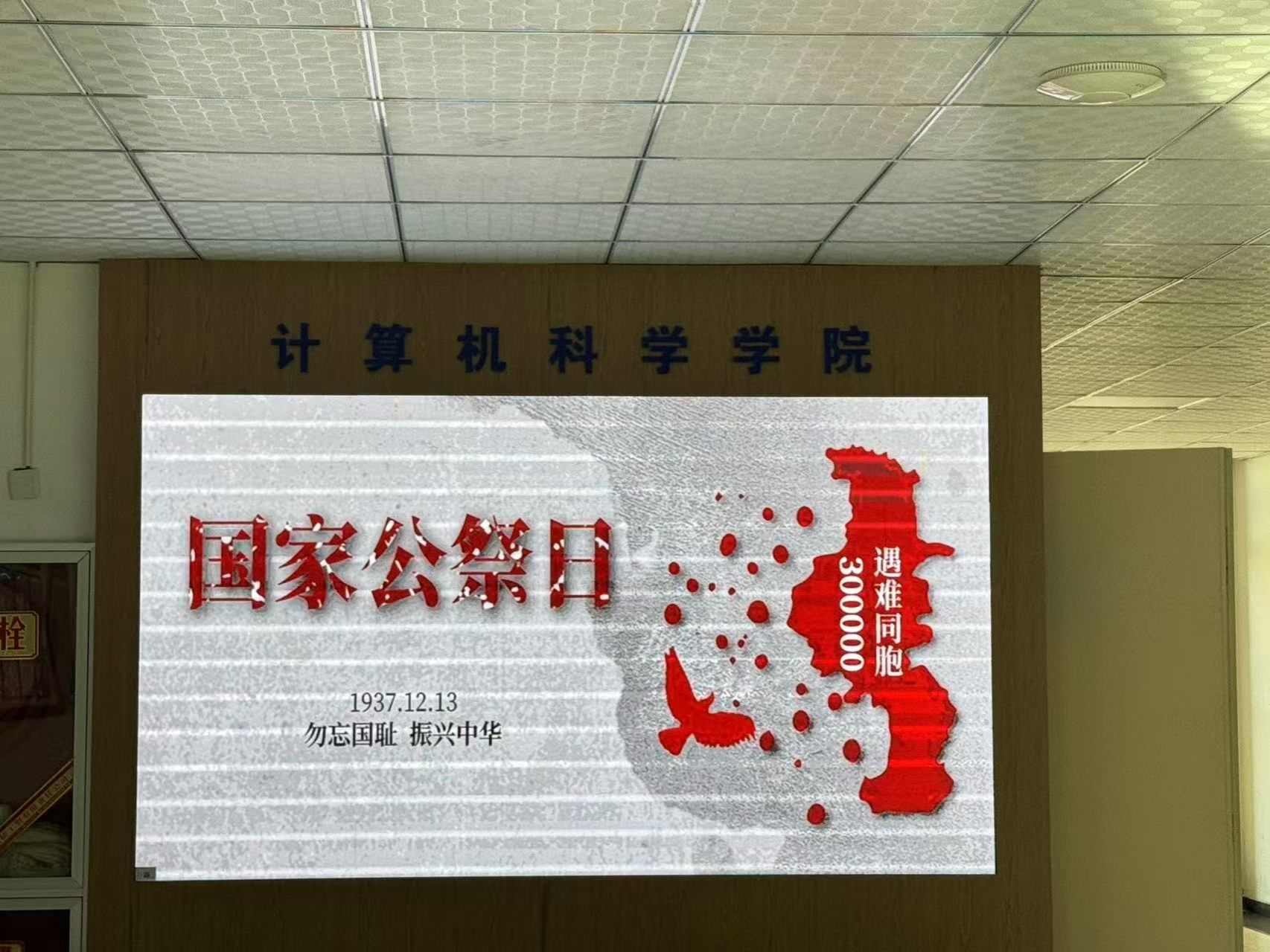 为了营造浓厚的纪念氛围,在学院楼内大屏幕循环播放着国家公祭日的主题海报,以直观、生动的方式向师生们展示南京大屠杀的历史画面和国家公祭日的重要意义。同时,在学院微信公众号XPUCSC上推送“以国之命,悼我同胞”主题文章,不仅传递了历史的信息,更激发了师生们对历史的敬畏和对和平的珍视。