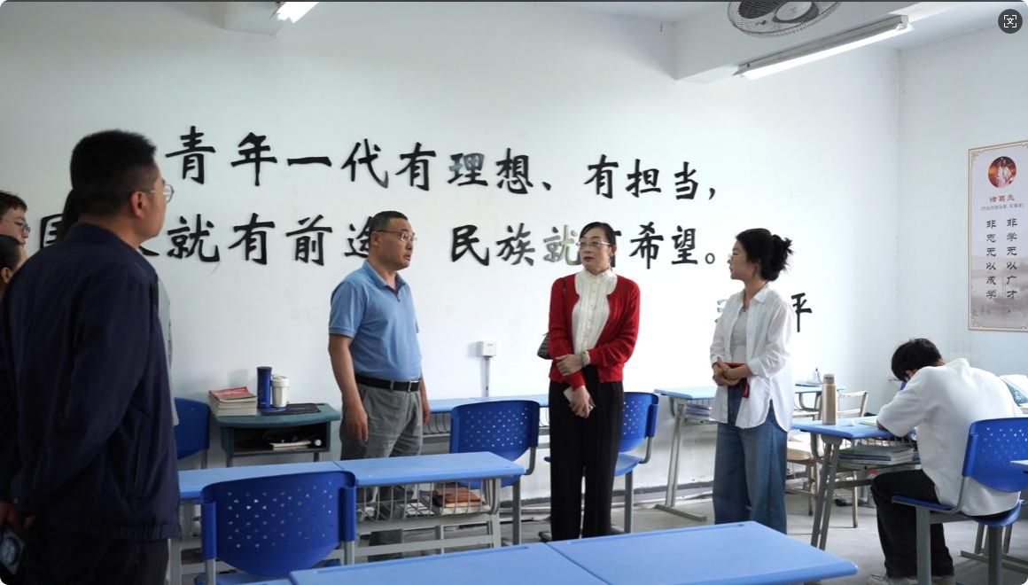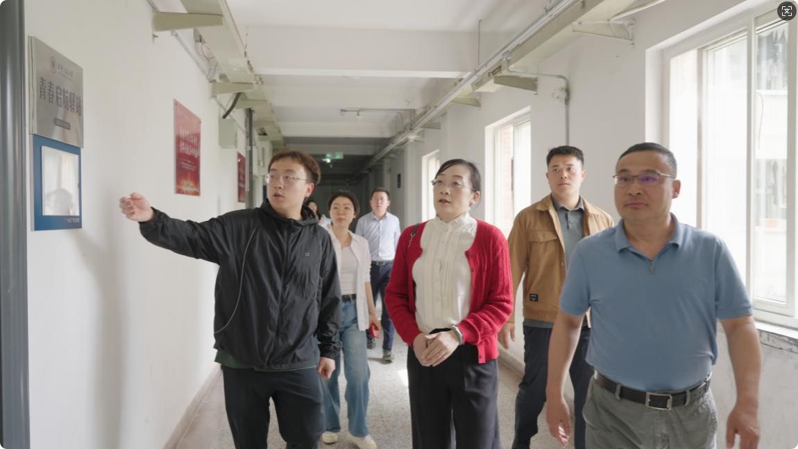 在三楼“党团活动室——青春起航驿站”,刘宇哲重点介绍了学院党建品牌“党建红引领数智蓝”的“党建 + 育人”双轮驱动模式。胡纯详细了解了学院特色党员团员志愿服务活动“IT智能帮”,该活动通过组织专业技术培训、义务维修等活动,切实将党团引领与服务社会紧密结合,有效发挥了党员的先锋模范作用,目前已服务校内师生上千人次,