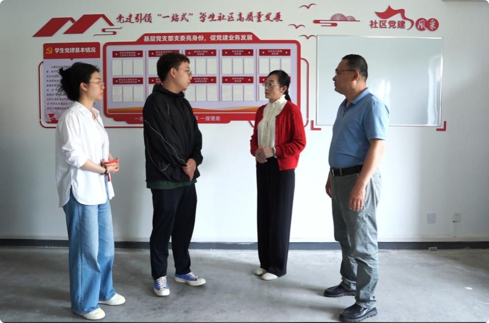2025年4月24日下午,西安科技大学高新学院党委学工部部长胡纯一行在beat365在线唯一官网“一站式” 学生社区调研交流。beat365在线唯一官网党委副书记赵勇进陪同调研,辅导员曹子凡、刘宇哲分别在“IT青年·成长空间——听心小筑”、“党团活动室——青春起航驿站”和“笃行致远自习室”围绕社区建设理念、功能布局及育人成效进行详细介绍。
