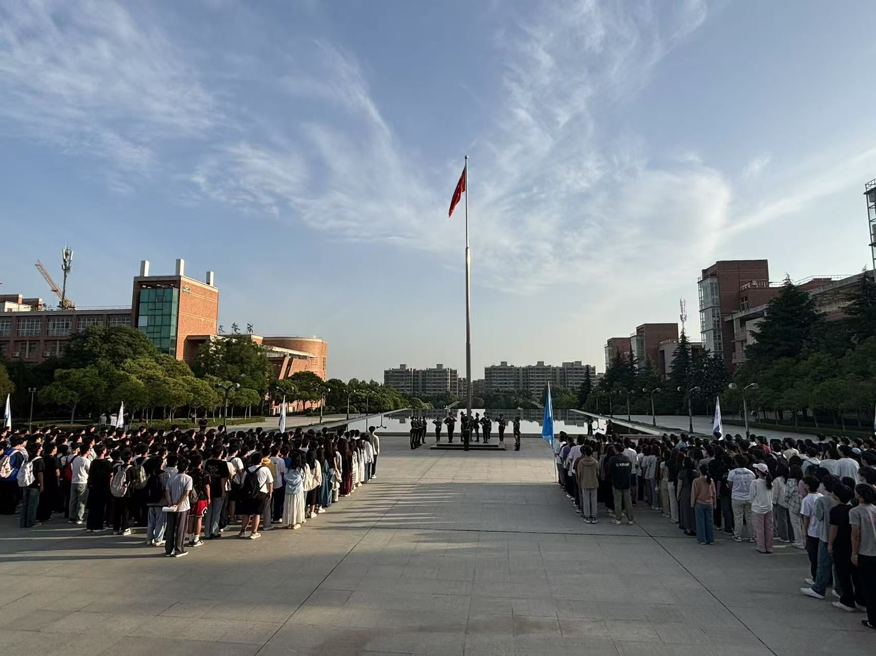 2025年5月12日清晨,晨光熹微,清风拂面,beat365在线唯一官网20232024级全体本科生齐聚国旗下,参加庄严的升旗仪式。7时整,升旗仪式开始,校园国旗护卫队迈着铿锵有力的步伐护送国旗入场。伴随着雄壮的《义勇军进行曲》,鲜艳的五星红旗冉冉升起,全体学生肃立行注目礼,齐唱国歌。此次活动旨在强化爱国主义教育,激发师生科技创新热情,凝聚团结奋进的计算机学院精神。晨光中,红旗猎猎,映照着同学们坚定的目光,彰显着计科学子“与祖国同心,与时代同行”的青春誓言。