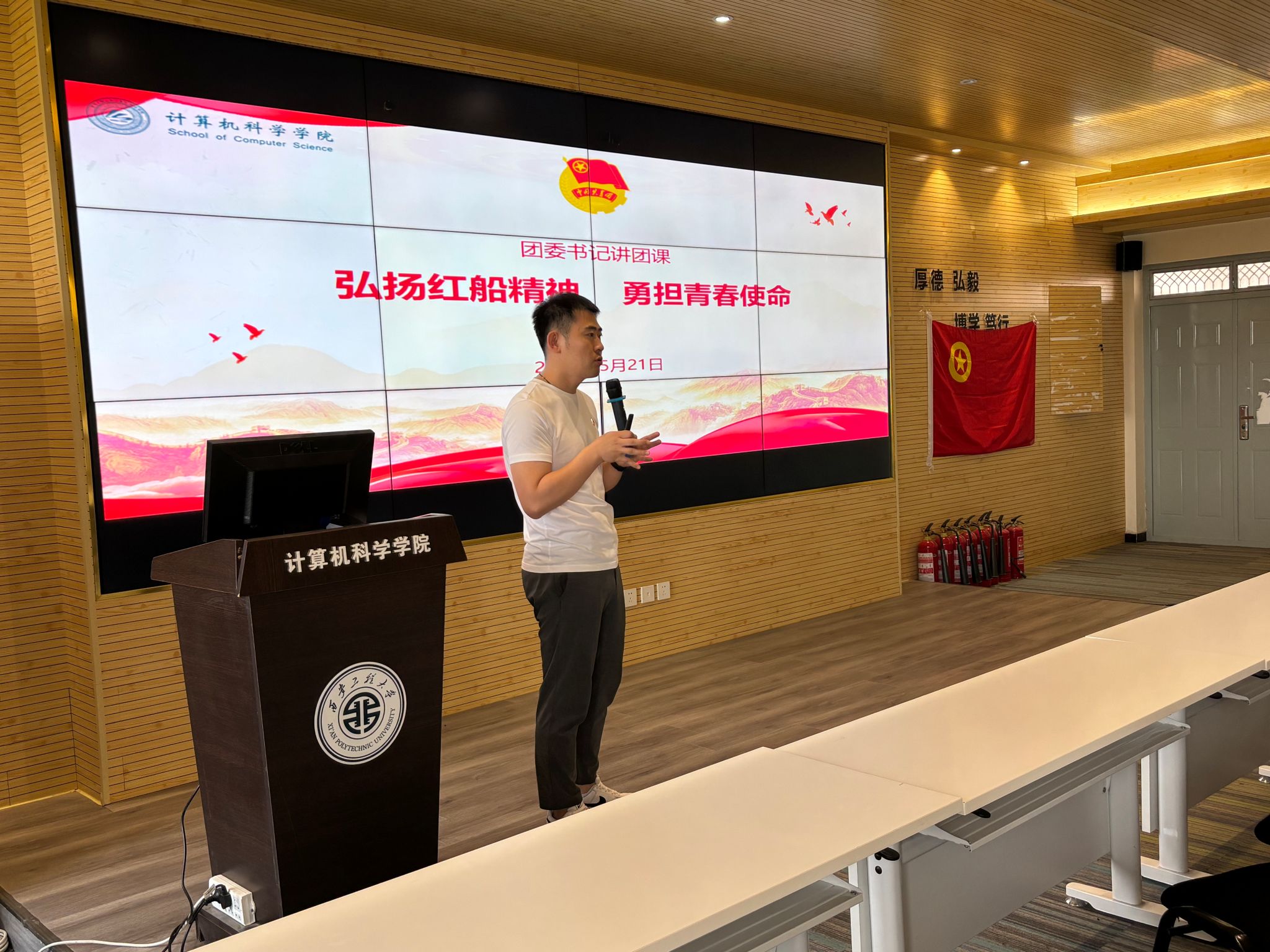 随后,薛绍凡以《新时代青年的使命与担当》为题讲授主题团课。他围绕“五四精神”与党的二十大报告中关于青年的论述,通过讲述科技先驱的爱国故事,激励青年传承奋斗精神,以“强国有我”的志向投身民族复兴伟业。