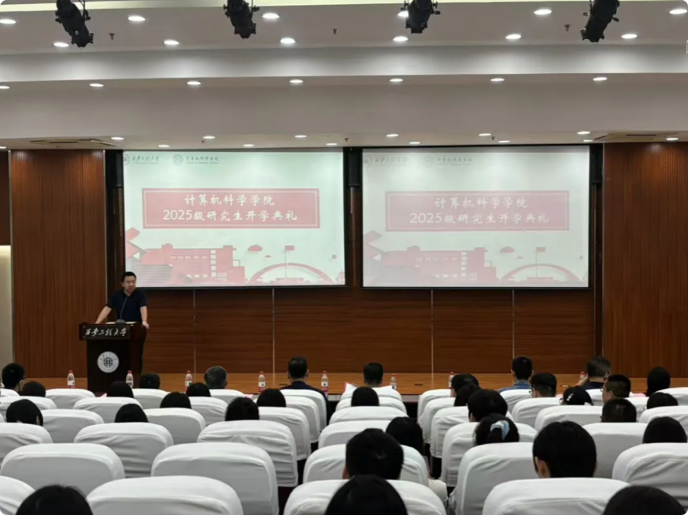 最后,党委副书记闫小兵讲话。他对新生提出四点希望:一是要立心铸魂,锚定家国方向。把学术追求融入国家需求,严守网络与意识形态底线。二是要深耕细研,锤炼科研韧劲。脚踏实地,坚守求真唯实,用好学院一流平台,多出高水平成果。三是要敢闯敢创,激发创新活力。打破思维定式,敢于探索未知,为国家科技进步、社会发展贡献力量。四是要张弛有度,守护身心之基。珍惜三年学习科研的黄金期,让自己成长为身心健康、品学兼优的高层次专门人才。