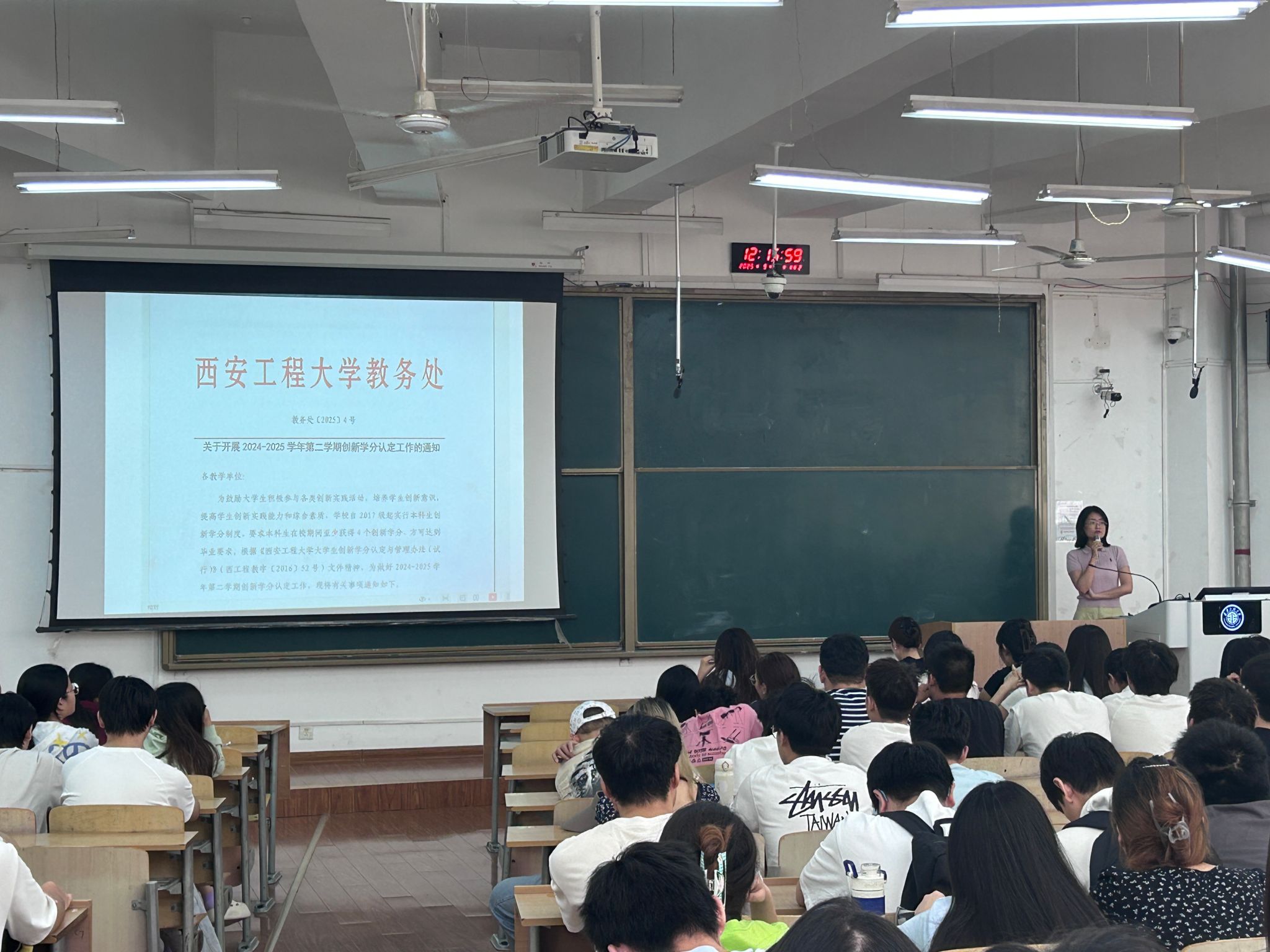 随后,张萌重点围绕创新学分认定问题向同学们做了详细讲解。她强调了申报创新学分认定的重要性,就申报流程、评议时间、申报方式做了详细说明。她强调,申请创新学分材料一定要真实,不得弄虚作假。她提醒同学们在准备创新学分申报材料时一定要警惕部分机构的虚假宣传,避免向虚假期刊投递论文。