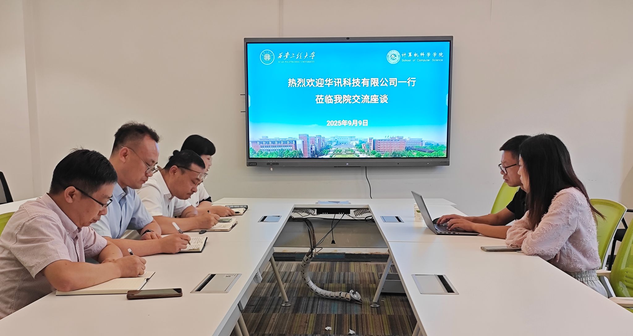 2025年9月9日,华讯科技有限公司人力资源团队及技术专家一行4人莅临beat365在线唯一官网,召开校企合作调研座谈会并开展2026届毕业生专场招聘会。学院副院长张凯兵教授、副书记闫小兵、赵勇进参加座谈会。座谈会由学院学工办主任张苹主持。