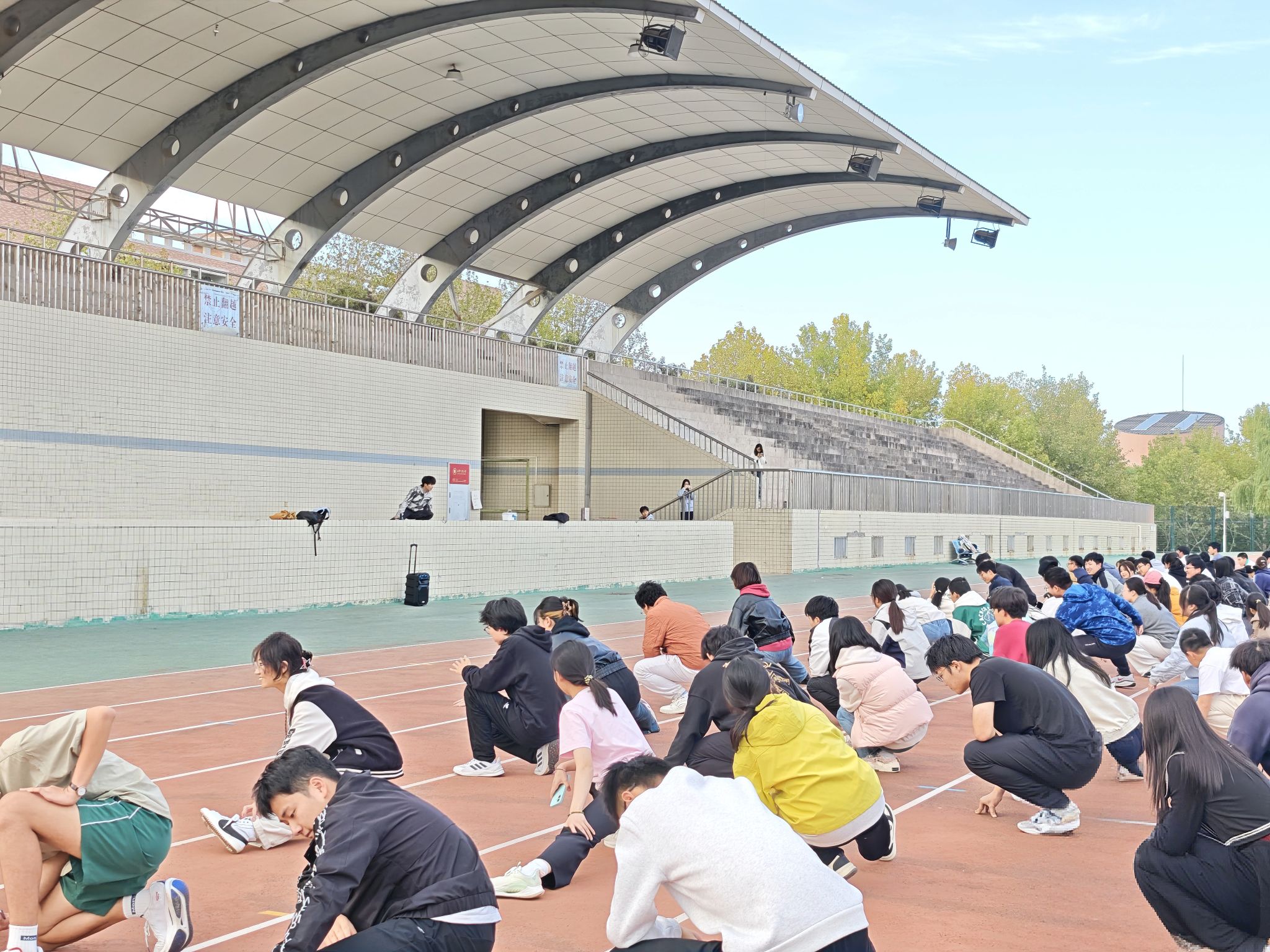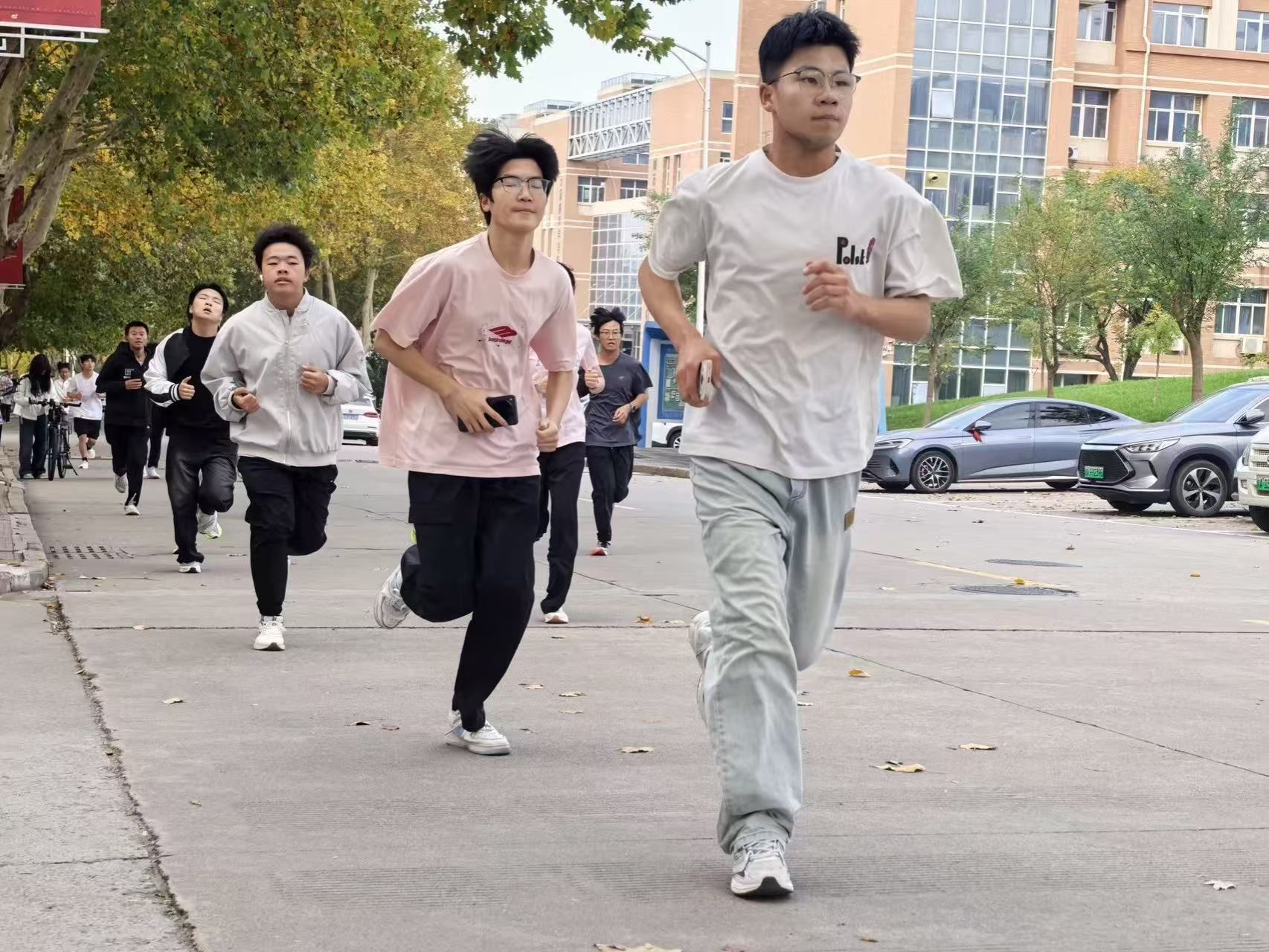 本次长跑路线经过精心勘察规划,以中心操场为起点,环绕校区主干道及景观运动区域,新生们在奔跑中既能领略校园秋日的金黄景致,又能感受校园的生机与活力。为确保活动实效与安全,路线沿途特别设置志愿者和安全员,在关键路段和打卡点提供饮水补给、路线指引及应急协助等贴心服务。随着一声“开跑”指令,各班队伍依次出发。跑道上,新生们状态昂扬,有的保持匀速稳步前行,展现着持久耐力;有的三五结伴相互鼓劲,用并肩奔跑诠释团队温情,生动践行了“高效、协作、创新”的拼搏精神。