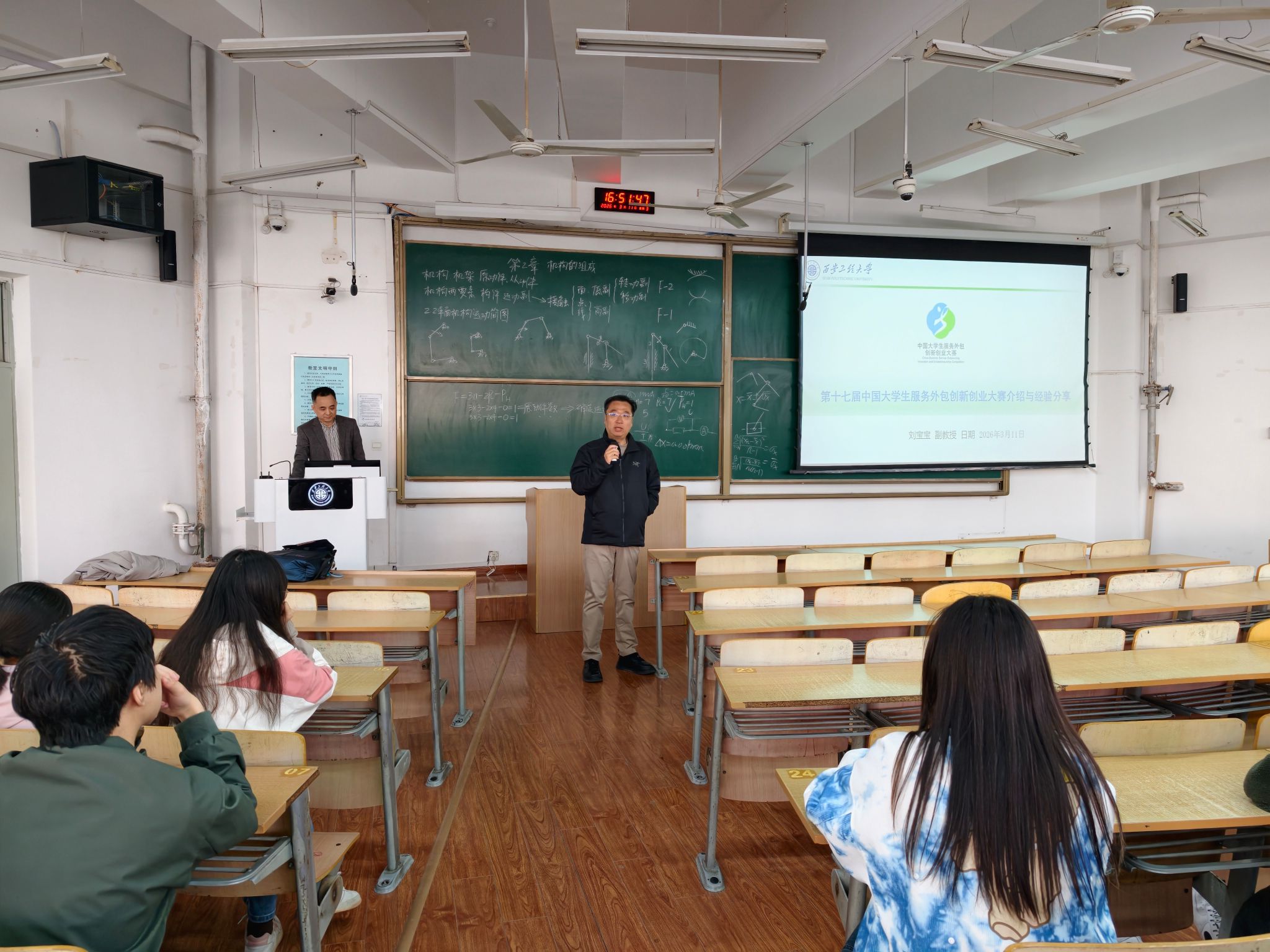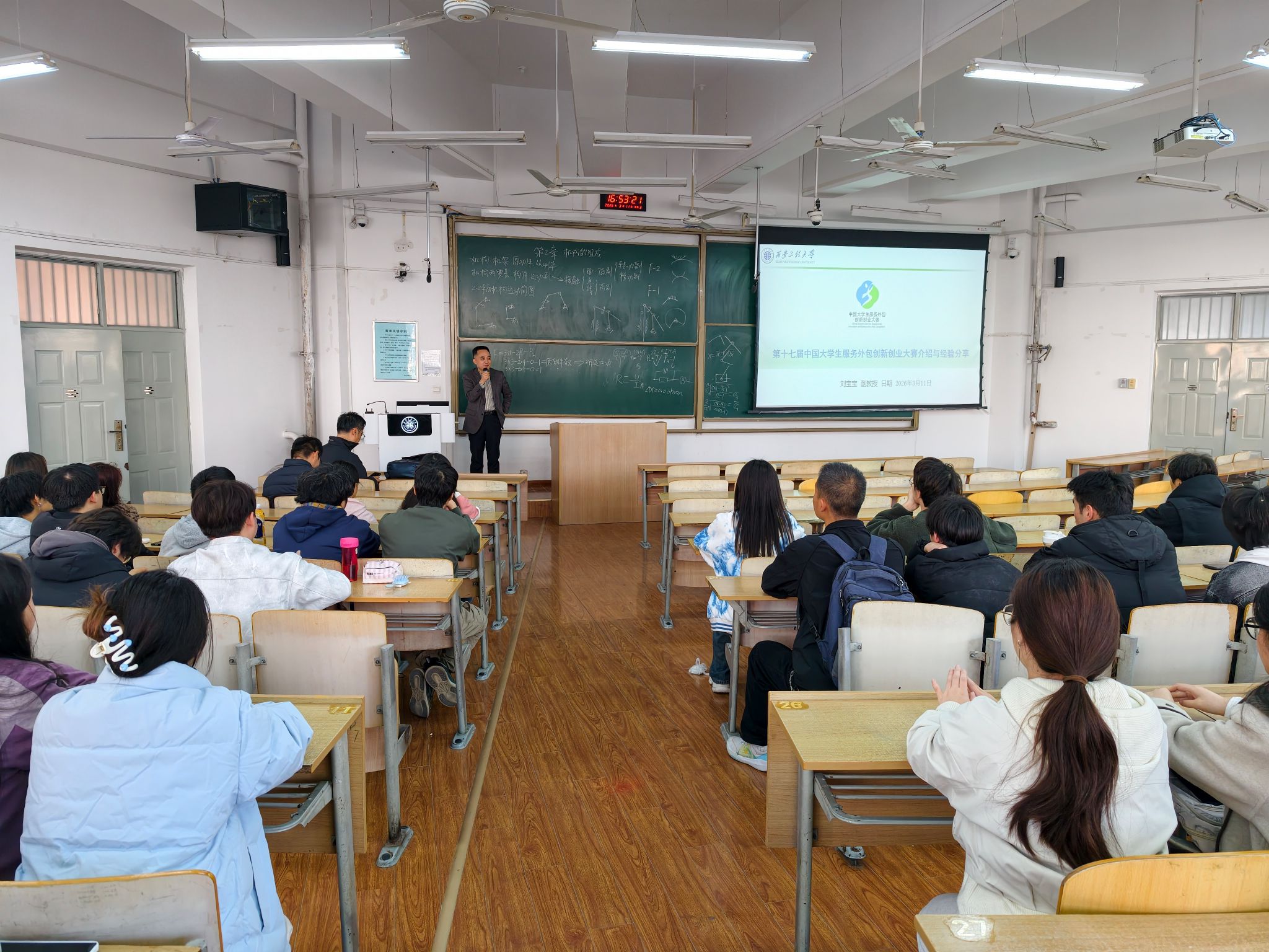 3月17日下午,beat365在线唯一官网特邀仇涵副教授、刘宝宝副教授开展第十七届中国大学生服务外包创新创业大赛专题宣讲会,分年级为全院学生系统解读赛事细则、精准指引参赛方向,助力学生以赛促学、以赛促创、以赛促练。