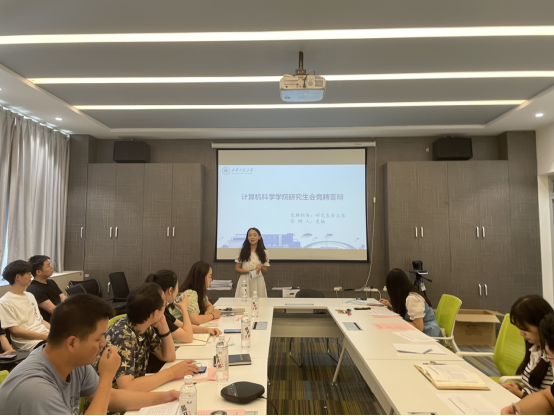 随后,程帅发言,她首先对第三届研究生会全体成员为学院所做出的突出贡献表示感谢。接着,她对研究生会的新一届干部提出几点要求:一是要在学术和科研上起引领作用;二是要带着思考开展工作,注重传承的同时更要发挥创新精神;三是要发挥好桥梁和纽带作用。