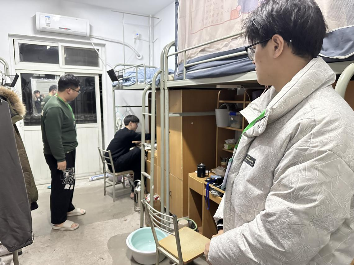 检查过程中,老师们认真巡查了本科生和研究生宿舍、辅导员工作站、党团活动室、自习室、研究室工作室等共约200间。检查重点是是否存在使用大功率违章电器或其它非安全器具,是否存在私拉乱接电线网线和饲养宠物等现象,以及室内电器、暖气、门窗、床柜等是否存在安全隐患等。