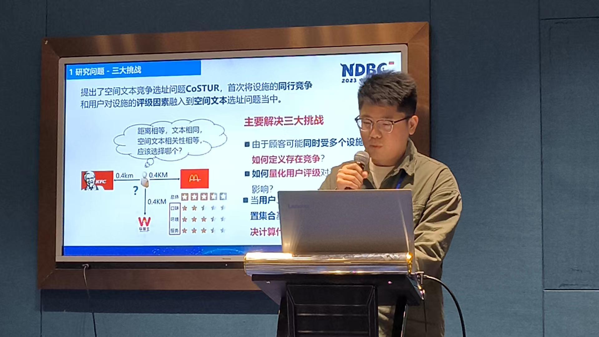 近期,我院服装设计智能化重点实验室王蒙副教授与研究生李晨伟同学等人共同撰写的题为《CoSTUR:面向用户评级的空间文本竞争选址研究》学术论文荣获第40届CCF中国数据库学术会议(NDBC 2023)“萨师煊优秀学生论文奖”,研究生李晨伟同学在大会做论文报告进行学术分享。NDBC大会是由中国计算机学会(CCF)主办的国内数据库领域最高学术会议,该奖是为纪念已故中国数据库领域泰斗萨师煊先生而设立。