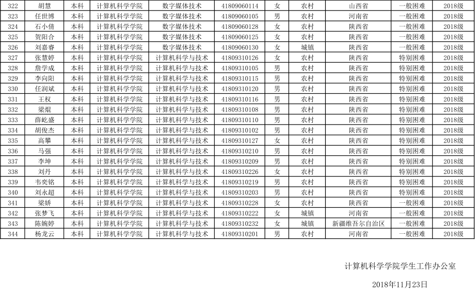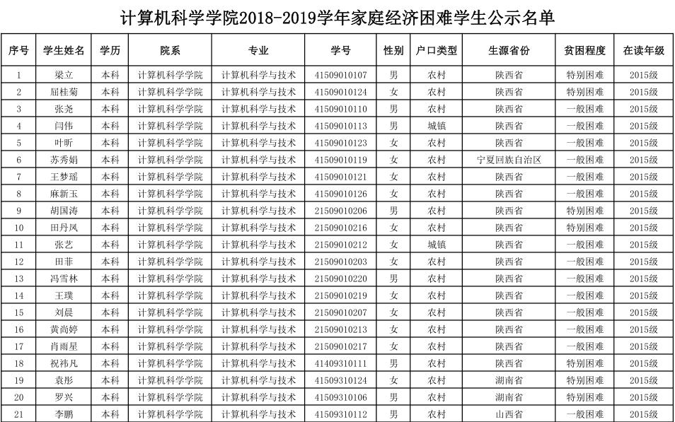 根据学校《关于做好2018-2019学年家庭经济困难学生认定工作的通知》要求,2018-2019学年,我院共有344人被认定为家庭经济困难学生,其中特别困难123人,一般困难221人。现对认定结果予以公示(附详细名单)。