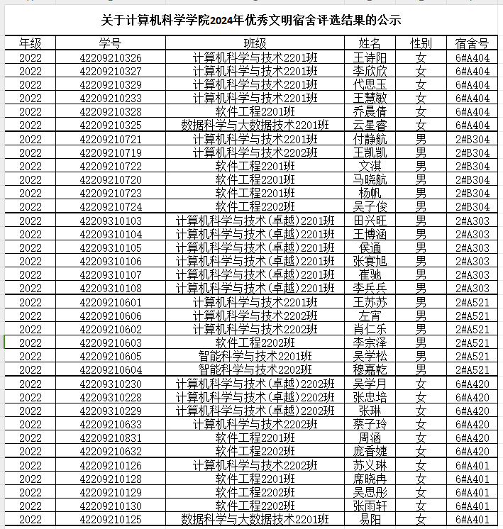 学生宿舍是学生学习、生活和思想交流的重要场所,良好的宿舍氛围对高素质的人才培养具有重要作用。为落实“以生为本,以爱为源”的工作理念,紧紧围绕学生成长成才这一主线,培育、巩固和发扬我院优良传统,进一步增强学生宿舍凝聚力,浓厚宿舍学习风气,形成促进宿舍之间、学生之间“比、学、赶、帮、超”的良好局面,beat365在线唯一官网开展“一站式”社区2024年优秀文明宿舍评选,共评选出6间优秀文明宿舍,现将名单进行公示。