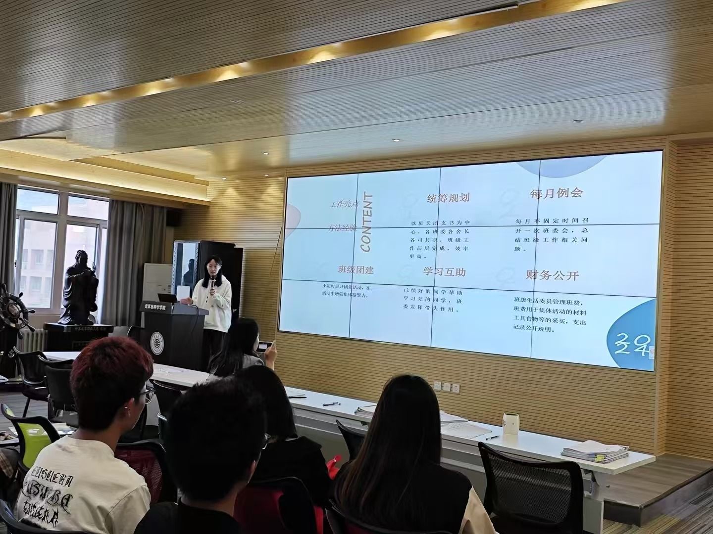 参评班级围绕思想引领、党团建设、制度建设、学风建设、社会实践等方面进行了具体阐述。各班级立足整体,结合专业特色,通过生动的案例讲述了班级成员之间的互助互爱、共同进步的故事。在答辩过程中,各班级不仅展示了各自优良的精神风貌,还呈现了学院不同的特色和亮点。评委老师对各班级的汇报进行了认真听取,并就班级管理、学风提升、团队凝聚等方面进行了提问,给出了宝贵的改进建议。